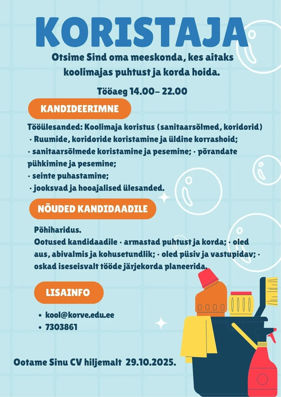 Soovi korral saab ühendust aadressil kool@korve.edu.ee