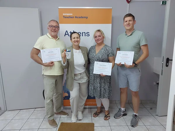 Jäin väga rahule mitmekülgse ja huvitava koolitusega: tavapärane loenguvorm vaheldus elamus- ja kogemusõppega, toimusid erinevad rühma- ja meeskonnatööd, mängulised tegevused, parimate praktikate jagamine ning arhiivi külastamine. Külastasime nimelt Firenzes asuvat Euroopa Liidu Ajalooarhiivi. Varustasin end mitmete praktiliste meetodite, mänguliste materjalidega ja ideedega grupitöödeks, et oma õpilasi paremini toetada ja õppimine atraktiivsemaks muuta. Samuti oli viljakas vahetada mõtteid kolleegidega Euroopa eri nurkadest. Õpiränne Itaalias ning just Firenzes ei olnud mitte lihtsalt täiendkursus, vaid pakkus mulle palju nii õpetaja kui inimesena, kuna seal oli lihtne lõimida oma koolitus põneva kultuuri- ja ajalooprogrammiga.Foto nr 2: Juta Laane tutvustamas Kõrveküla Põhikooli (autor: Juta Laane).Foto nr 3: Ühistöö Euroopa Liidu eesmärkide ja väärtuste teemal (autor: Juta Laane).Kursus "From STEM to STEAM Education: a New Learning Approach" Kreekas, Ateenas (14.10.-19.10.2024), osalejad Monika Jõgiaas, Ott Toomsalu ja Heiki Rokka.